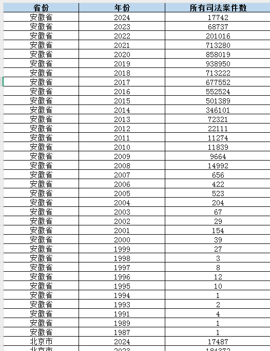 序号 省市 年份 环境保护案件数-地级市 环境保护案件数-县级 环保案件总数 总案件数 环境案件数占比 省份 年份 所有司法案件数
