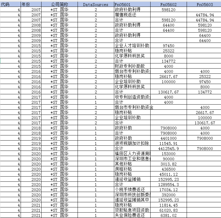 数据名称:上市公司-环保补助数据